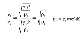 சம வெப்பநிலை, அழுத்தத்தில் உள்ள இரு வாயுக்களை கருதுக . அவற்றின் அடர்த்தி மட்டும் வெவ்வேறு என்க. அந்த இரு வாயுக்களின் வழியே ஒலியின் திசைவேகங்கள் முறையே,