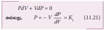 இங்கு, K1 காற்றின் வெப்பநிலைமாறா பருமக்குணகம். சமன்பாடு (11.21) யை (11.16), இல் பிரதியிட, காற்றில் ஒலியின் திசைவேகம்