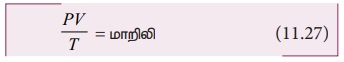 இங்கு P-அழுத்தம், V-பருமன், T-வெப்பநிலை, μ-மோல்களின் எண்ணிக்கை, R - பொது வாயு மாறிலி, கொடுக்கப்பட்ட நிறை கொண்ட மூலக்கூறுக்கு சமன்பாடு (11.26)யை கீழ்க்கண்டவாறு எழுதலாம்.
