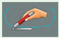 ஒரு சட்டகாந்தத்தின் ஒரு முனையை ஆணி/ சிறிய இரும்புத்துண்டின் ஒரு முனையிலிருந்து மறுமுனை
