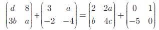 கீழ்க்கண்ட அணிச் சமன்பாட்டிலிருந்து a, b, c, d ஆகியவற்றின் மதிப்புகளைக் காண்க.