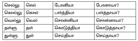 (எ.கா) சொல்லு - சொல், நில்லு - நில், வந்தியா - வந்தாயா?, சாப்ட்டியா - சாப்பிட்டாயா?