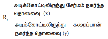 Rf = அடிக்கோட்டிலிருந்து சேர்மம் நகர்ந்த தொலைவு (x) / அடிக்கோட்டிலிருந்து கரைப்பான் நகர்ந்த தொலைவு (y)