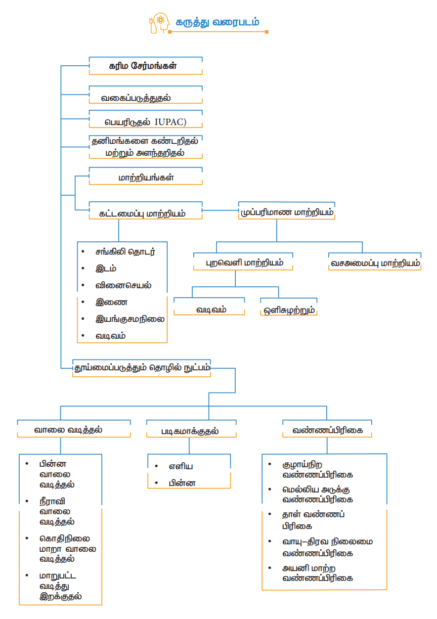 சேர்மங்களின் அமைப்பு, அதன் இயற் பண்புகள், வேதிப் பண்புகள் மற்றும் உயிரிப் பண்புகளை பற்றி அறிய அச்சேர்மங்கள் அவற்றின் தூய நிலையில் இருப்பது அவசியமாகிறது. கரிமச் சேர்மங்களைத் தூய்மை செய்ய பல முறைகள் உள்ளன. கரிம சேர்மத்தில் அடங்கியுள்ள மாசுக்களின் தன்மை மற்றும் கரிமச் சேர்மத்தின் தன்மையைச் சார்ந்து பயன்படுத்தப்படவேண்டிய முறை தீர்மானிக்கப்படுகிறது. கரிமச் சேர்மங்களை பிரித்தெடுக்க மற்றும் தூய்மைப்படுத்த பெரும்பாலும் பயன்படுத்தபடும் முறைகளாவன அ) படிகமாக்குதல் ஆ) பதங்கமாக்குதல் இ) வாலைவடித்தல் ஈ) பின்னவாலை வடித்தல் உ) நீராவியால் வாலை வடித்தல் ஊ) கொதி நிலை மாறா வாலைவடித்தல் (Azeotropic Distillation) எ) வகையீட்டு வாலைவடித்தல் ஏ) வண்ணப்பிரிகை முறை