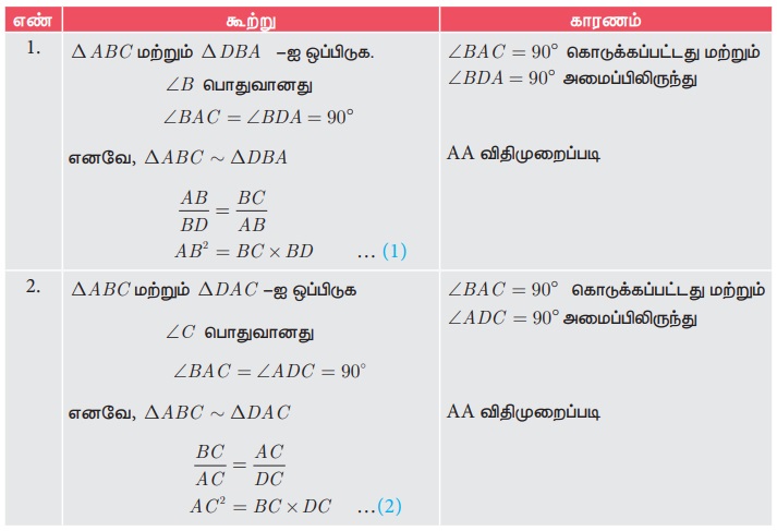 கூற்று, நிரூபணம், தீர்க்கப்பட்ட எடுத்துக்காட்டு கணக்குகள் | வடிவியல் - பிதாகரஸ் தேற்றம் | 10th Mathematics : UNIT 4 : Geometry