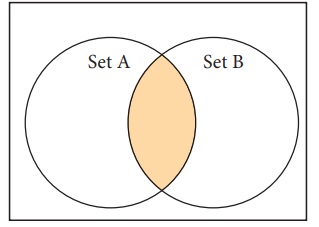 வெட்டு (intersection) : இது இரண்டு Setகளின் பொதுவான உறுப்புகளை உள்ளடக்கியது.