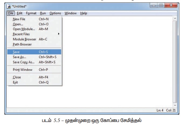 முன்னியல்பாக பைதான் கோப்புகள் .py என்ற நீட்டிப்புடன் சேமிக்கப்படுகிறது. எனவே, பைத்தான்