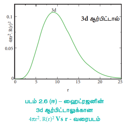 படம் 2.6 (ஈ) – ஹைட்ரஜனின் 3d ஆர்பிட்டாலுக்கான 4πr2 . R(r)2 Vs r - வரைபடம்