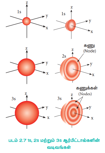 படம் 2.7 1s, 2s மற்றும் 3s ஆர்பிட்டால்களின் வடிவங்கள்
