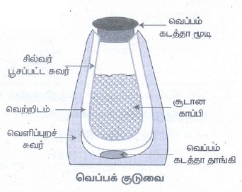 6. வெப்பக் குடுவையில், சில்வர் சுவர்கள் வெப்பத்தை எதிரொளிக்கின்றன.