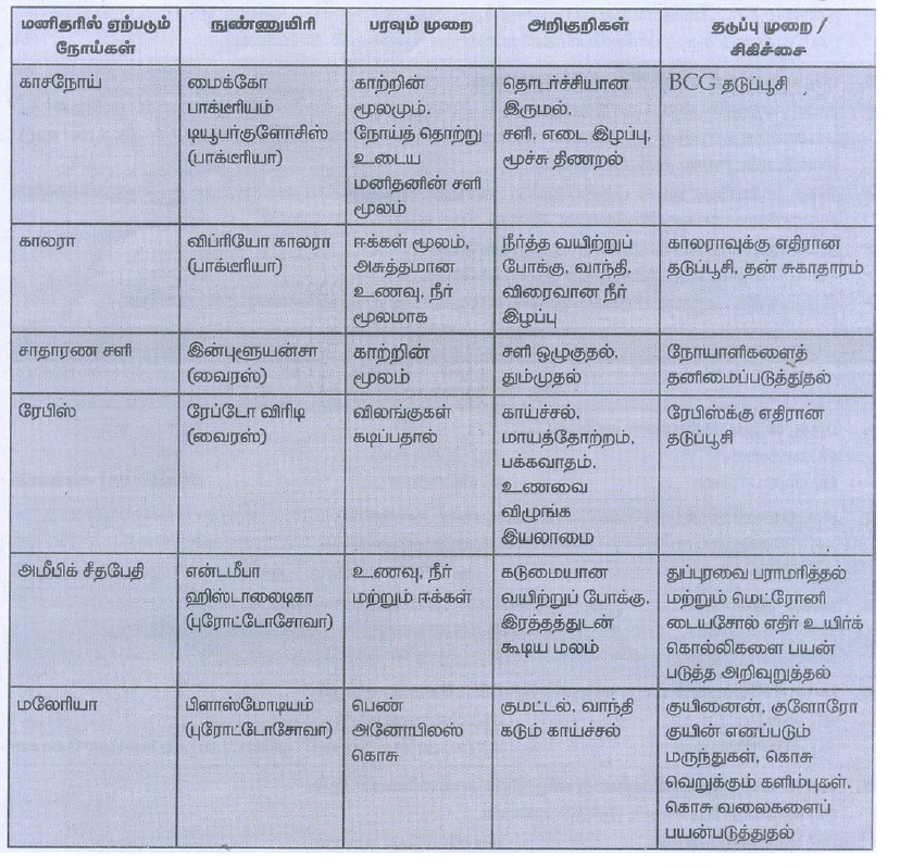 மனிதர்களுக்கு ஏற்படும் பொதுவான நோய்கள் பற்றி சிறுகுறிப்பு எழுதுக.