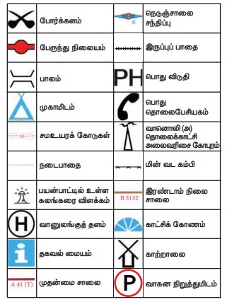 > இச்சின்னங்கள் புவிப்பட திறவு விசை பகுதியில் விளக்கப்பட்டுள்ளன.