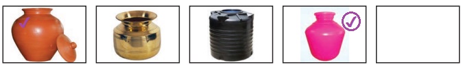 2. உங்கள் வீட்டில் எந்தப் பாத்திரத்தில் குடிநீர் சேமித்து வைக்கப்படுகிறது?