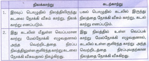 6. நிலக்காற்று, கடற்காற்று - வேறுபடுத்துக.