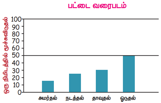 மதி மற்றும் மொழி இருவரும் நடத்தல், தாவுதல், ஓடுதல் போன்ற பல்வேறு உடற்பயிற்சிகளைச் செய்தனர். ஒவ்வொரு செயலையும் செய்தபின் அவர்கள் விடும் மூச்சுகளின் எண்ணிக்கை குறித்து ஒரு பட்டை வபைடம் வரைந்தனர்.
