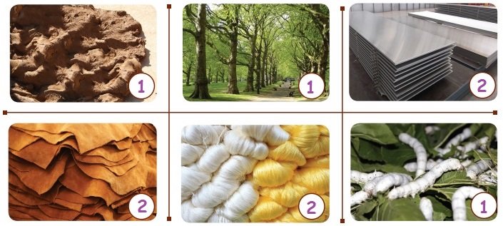 அவற்றிலிருந்து மனிதரால் தயாரிக்கப்பட்ட பொருள்களுக்கு '2' எனவும் எழுதுக.