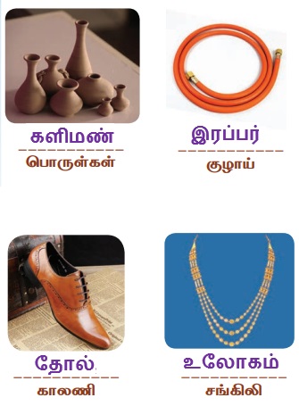 விடை : களிமண், இரப்பர், தோல், உலோகம்