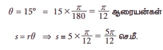 எடுத்துக்காட்டு 3.6 5 செ.மீ. ஆரம், மையக் கோணம் 15° -ஐ கொண்ட வட்ட வில்லின் நீளம் காண்க.
