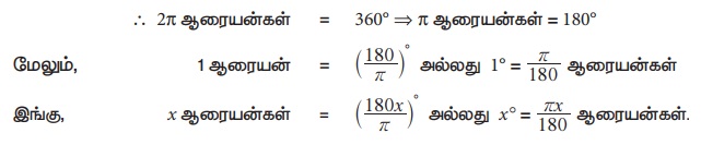(vi) 1 ஆரையன் = 57°17'45" மற்றும் 1° = 0.017453 ஆரையன்
