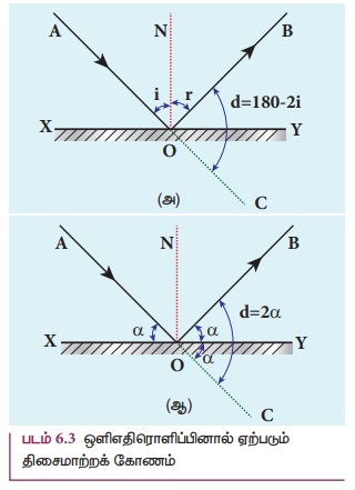 உள்ள கோணத்திற்கு விலகுகோணம் என்று பெயர். இவ்விலகுகோணத்தைப் படம் 6.3(அ) இல் காட்டியுள்ளவாறு