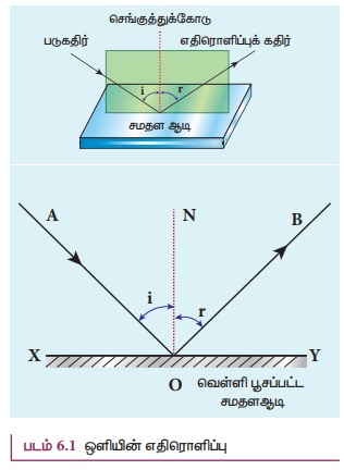 ஒளி எதிரொளிப்பு விதி படம் 6.1 இல் காட்டப்பட்டுள்ளது