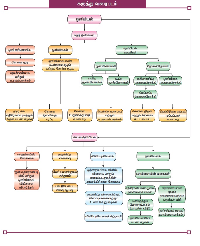 • ஒளியைக் கதிராகவும், அலையாகவும் கருதும்