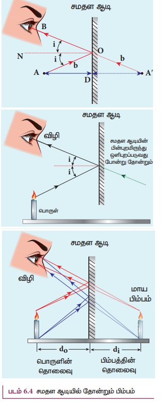 சமதள ஆடியில் தோன்றும் மெய் மற்றும் மாயபிம்பங்களைப்