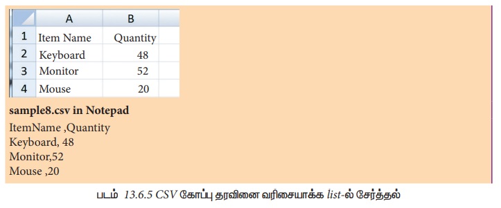 எளிமையாக கூறுவதெனில் CSv.reader மற்றும் CSV.writer ஆனது பட்டியல் (list/tuple) பதிவுடன்