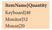 {ItemName ,Quantity': 'Monitor,52'}