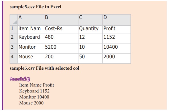 (எடுத்துக்காட்டாக) “sample8.csv” என்ற கோப்பானது Dictionary -யை படித்தல்.