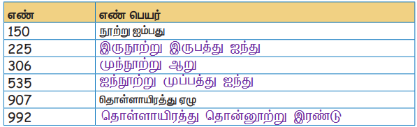 அனைத்து மூன்றிலக்க எண்களையும் மற்றும் எண் பெயர்களையும் படித்து எழுதுக.