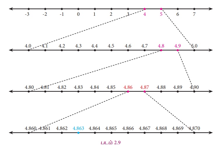 4.863 என்பது 4, 5 என்ற எண்களுக்கு இடையே உள்ளது.(படம். 2.9)