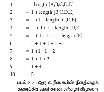 length [A, B, C, D, E] = 1 + length [B, C, D, E]