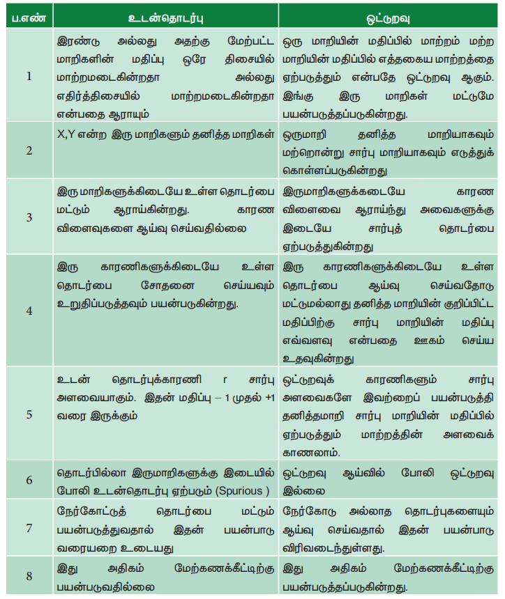 5. உடன் தொடர்புக்காரணி r சார்பு அளவையாகும். இதன் மதிப்பு - 1 முதல் +1 வரை இருக்கும்