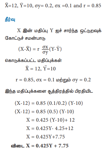 X இன் மதிப்பு Y ஐச் சார்ந்த ஒட்டுறவுக் கோட்டின் சமன்பாடு