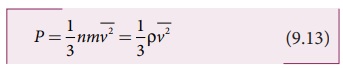 சமன்பாடு (9.14) இல் இருந்து, அழுத்தம் என்பது ஓரலகு பருமனுள்ள வாயுவின் சராசரி இயக்க ஆற்றலின் மூன்றில் இரண்டு பங்கிற்குச் சமம் என அறியலாம்.
