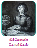 கோட்பாட்டின்படி, சூரியனை மையமாகக் கொண்டு கோள்கள் இயங்கும் கொள்கையை வெளியிட்ட கோபர்நிகஸின்