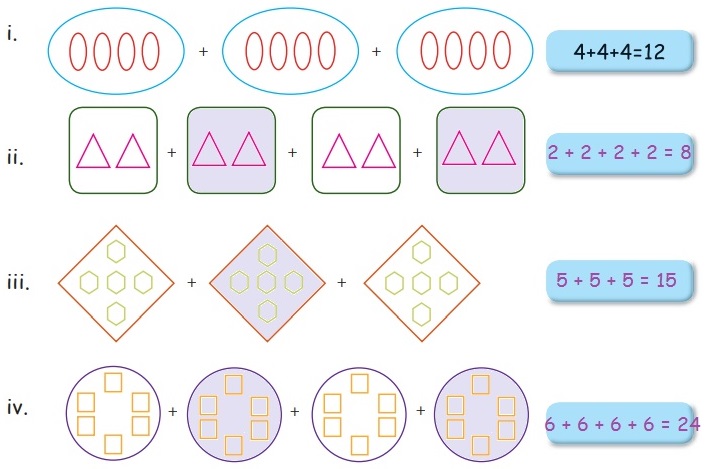 iii) 5 + 5 + 5 = 15