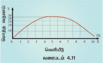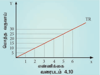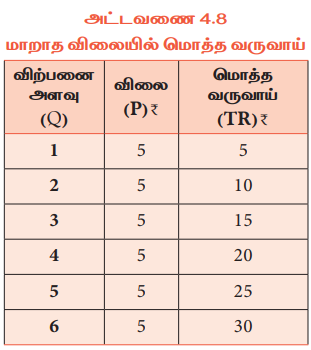 நிலையான விலையில் - விலை ₹5 ஆக உள்ளபோது மொத்த வருவாயின் போக்கினை அட்டவணை 4.8 மற்றும் வரைபடம் 4.10 விளக்குகிறது.