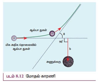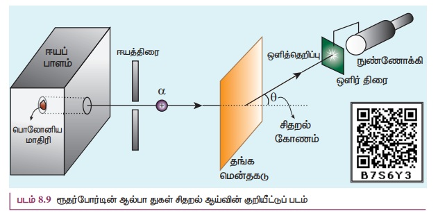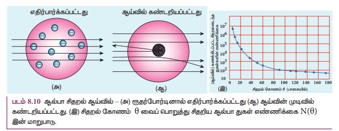 படம் 8.9 ரூதர்போர்டின் ஆல்பா துகள் சிதறல்