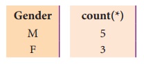 மேற்கண்ட SELECT கூற்று ஆண் மற்றும் பெண் மாணாக்கர்களின் எண்ணிக்கையை