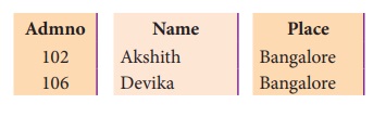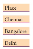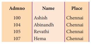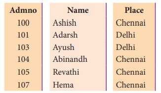 Place என்ற புலங்களை கொண்டுள்ள ஒரு அட்டவணையை நாம் உருவாக்கலாம்.