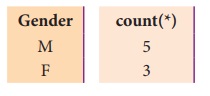 பெற்றுள்ளோம். GROUP BY clause அனைத்து 'M' மாணவர்களையும் தொகுத்து, ஒரு வரிசையை மட்டும்
