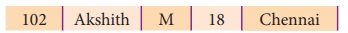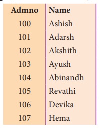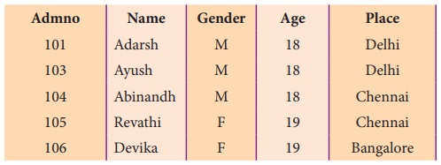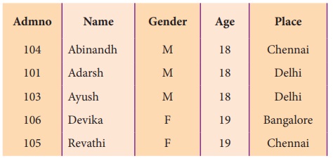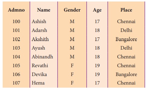 (gender), வயது (Age) போன்றவை எடுத்துக்கொள்ளலாம். Admno, Name, Gender, Age மற்றும்