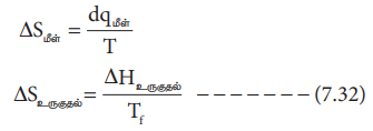 ΔS உருகுதல் = ΔHஉருகுதல் / Tf ---------- (7.32)