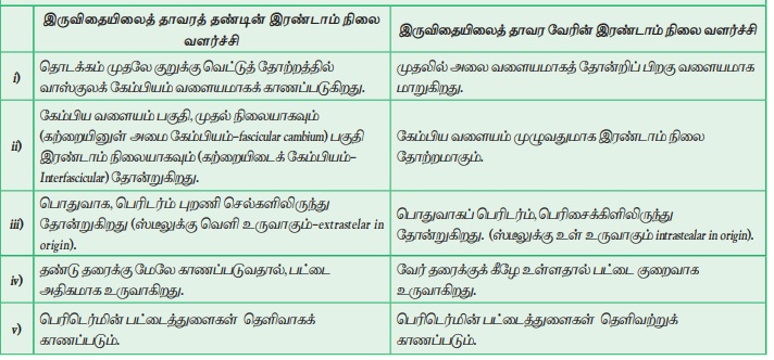 தாவர வேரின் இரண்டாம் நிலை வளர்ச்சிக்கும் இடையேயான வேறுபாடுகள்