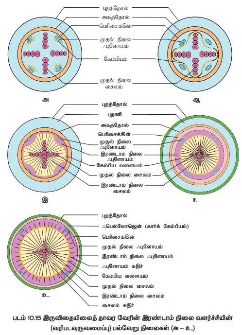 இருவிதையிலை தாவர வேர்களில் நடைபெறும் இரண்டாம் நிலை