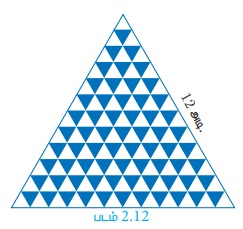 சிறிய தரையோடுகளைக் கொண்டு 12 அடி பக்க அளவுள்ள சமபக்க முக்கோண தரையோடுகள் (Mosaic) அமைக்கப்படுகிறது. அவற்றில் உள்ள ஒவ்வொரு தரையோடும் 12 அங்குல அளவிலான சமபக்க முக்கோண வடிவில் உள்ளது. சிறிய தரையோடுகளின் வண்ணங்கள் படத்தில் காண்பிக்கப்பட்டுள்ளது போல மாறி மாறி உள்ளன. ஒவ்வொரு வண்ணத்திலும் உள்ள தரையோடுகளின் எண்ணிக்கை மற்றும் கொடுக்கப்பட்ட அமைப்பில் உள்ள மொத்த தரையோடுகளின் எண்ணிக்கை காண்க.