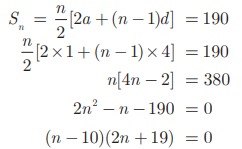 இங்கு Sn = 190. எனில், n -யின் மதிப்பைக் காணவேண்டும். முதல் உறுப்பு a = 1, பொது வித்தியாசம் d = 5 - 1 = 4.