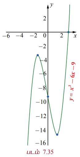 y = f (x) = x3 - 6x - 9 என்ற வளைவரையை வரைக.